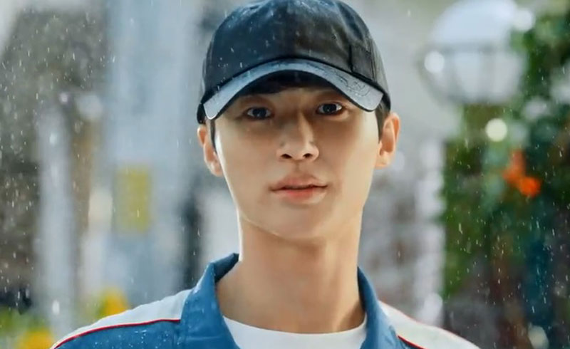 She sees his going out. She goes out. It’s raining outside. She grabs the yellow umbrella outside. She runs into the courier. She remembers what Sun-Jae told her that he mistook her for a courier. She realizes that she was the one who put the umbrella over him.