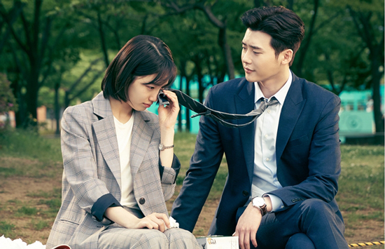 From the stills you can see, Nam Hong Joo (Suzy) and Jung Jae Chan (Lee Jong Suk) sit on a long chair. She cried and wipes her tears through his tie. He looks at her and comforts her, just like a boyfriend.